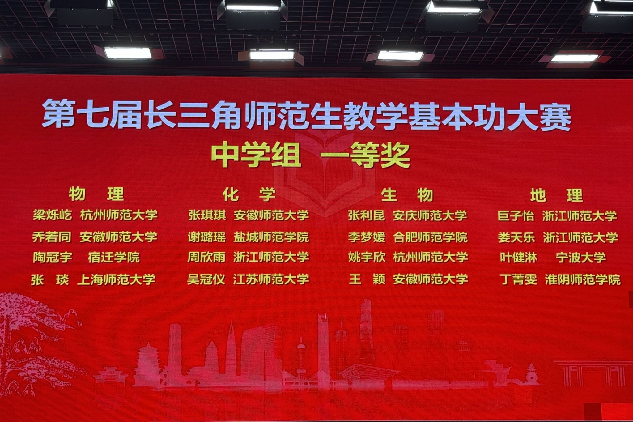 11月14-16日,由安徽省教育厅、上海市教育委员会、浙江省教育厅、江苏省教育厅联合主办的第七届长三角师范生教学基本功大赛顺利举行。淮阴师范学院选派4名选手参与大赛,地科院2203班丁菁雯同学在吉婷婷老师指导下参赛。凭借扎实的专业功底与出色的现场表现,丁菁雯同学喜获大赛一等奖。