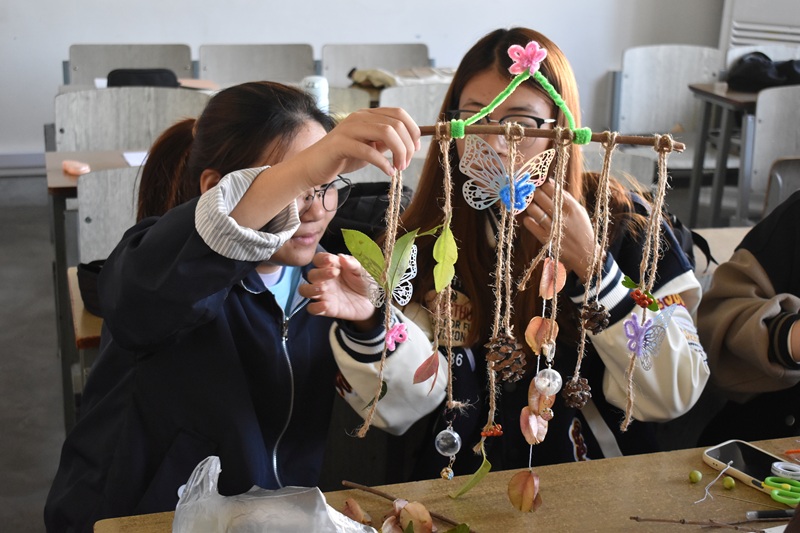 活动筹备阶段,工作人员围绕活动内容和方式进行了深度研讨,结合网络实时热点和大学生心理状态,召开会议向参赛人员明确活动要求与注意事项,并鼓励大家发挥想象、结合个人成长经历,为现场创作预留充足的创意空间。活动现场设置两大核心环节,吸引同学们积极参与。在“记忆疗愈风铃”创作环节,同学们围绕幸福回忆、童年意象等主题,用彩绳、贝壳、铃铛、卡纸多样素材编织专属风铃,将抽象的美好记忆转化为具象的手工作品,在动手过程中沉淀心绪、舒缓压力。随后的“记忆风暴”游戏中,主持人快速报出系列事物,参与者需通过绘画形式快速记录记忆内容,最终以答题正确率决出名次,现场氛围紧张又欢乐。互动中,同学们不仅锻炼了快速记忆与表达能力,更在集体协作中增强了社交联结,让童年回忆的治愈力量持续传递。