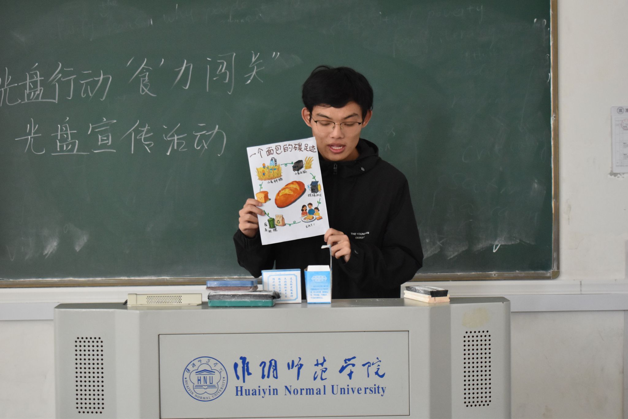 粮食稳,天下安。为弘扬勤俭节约、抵制铺张浪费的时代风尚,切实提升学生爱粮节粮意识与低碳环保素养,10月1日至11月5日,淮阴师范学院伍豪环保先锋社举办“光盘行动 ‘食’力闯关”光盘宣传活动,辅导员刘婧出席本次活动。