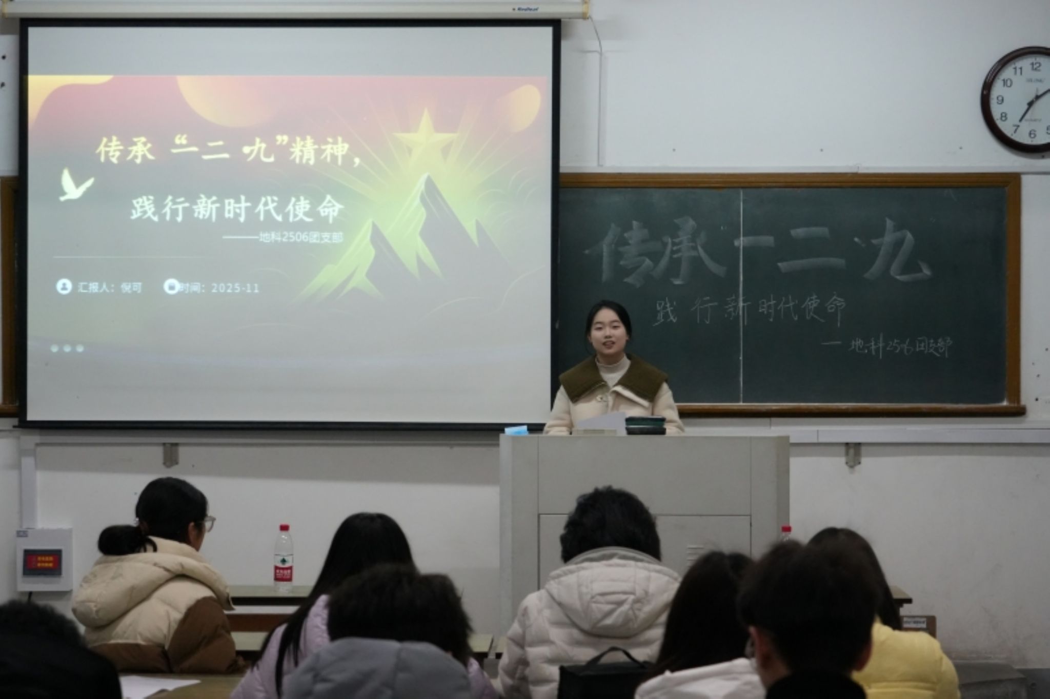 为传承“一二·九”爱国精神,引导青年学子厚植家国情怀,近日,地科院组织各团支部开展“一二·九”系列主题团日活动。全院学子在沉浸式的学习与实践中,重温历史、汲取力量,以青春之姿践行使命担当。