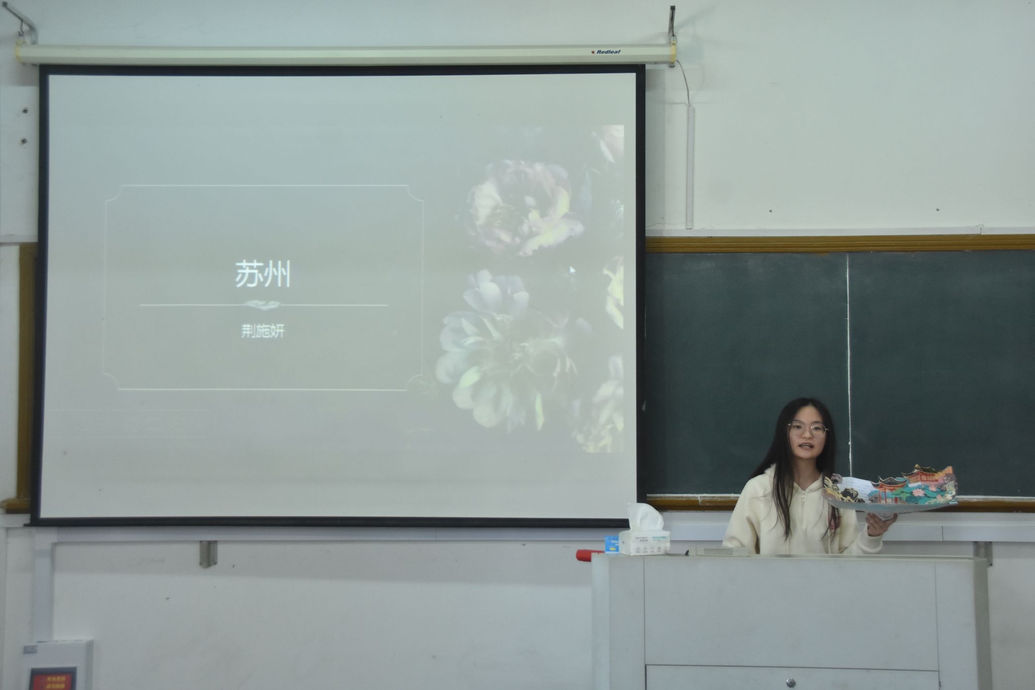 活动现场,参赛选手依次登台展示并讲解作品,有人以细腻笔触勾勒苏州园林的婉约雅致,娓娓道来江南水乡的古典韵味;有人精心描绘甘肃敦煌莫高窟的恢弘壮美,讲述丝路文明的悠久历史;还有同学展现各地独具特色的乡土古迹,诉说家乡独有的历史典故与文化风情,生动诠释了各地名胜古迹的深厚历史韵味与独特人文底蕴。参赛作品题材丰富多样、风格各具特色,既展现了家乡的自然与人文之美,也彰显了学子们的创作功底。
