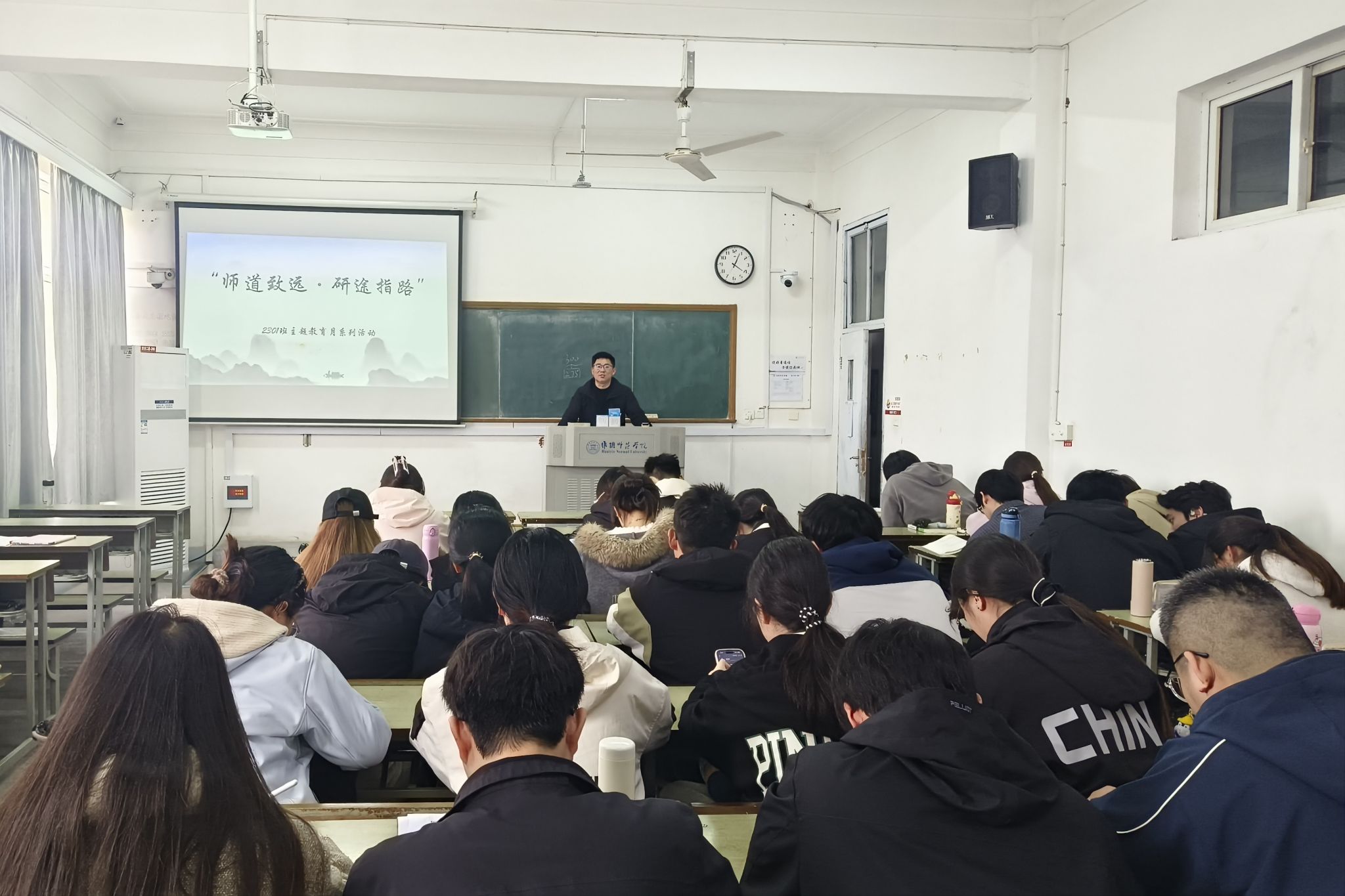 2301班同步举办“师道致远 研途指路”主题教育月专题指导活动,深化升学就业指导。活动中,辅导员杨浩结合最新就业市场、升学政策及历年数据,全方位解读考编、考研报考趋势、竞争格局与政策调整,引导同学们理性规划、避免盲从。班主任张余庆则聚焦备考实操,结合教学经验与往届案例,讲解考编面试、考研复习、资料选择等实用技巧,强调夯实专业基础、合理分配时间的重要性,助力同学们提升综合应试能力。
