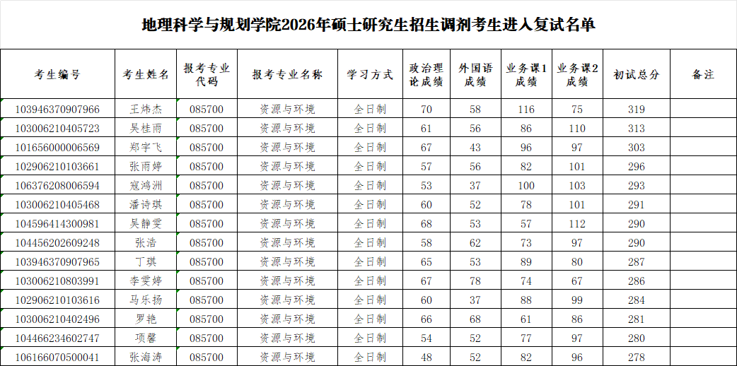 地理科学与规划学院2026年硕士研究生招生调剂考生进入复试名单