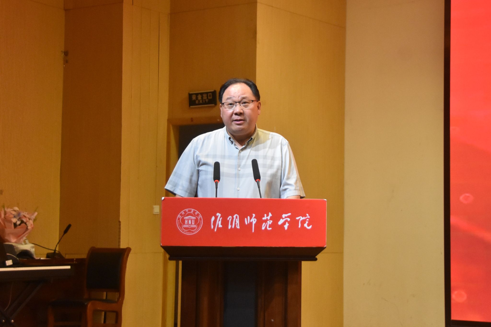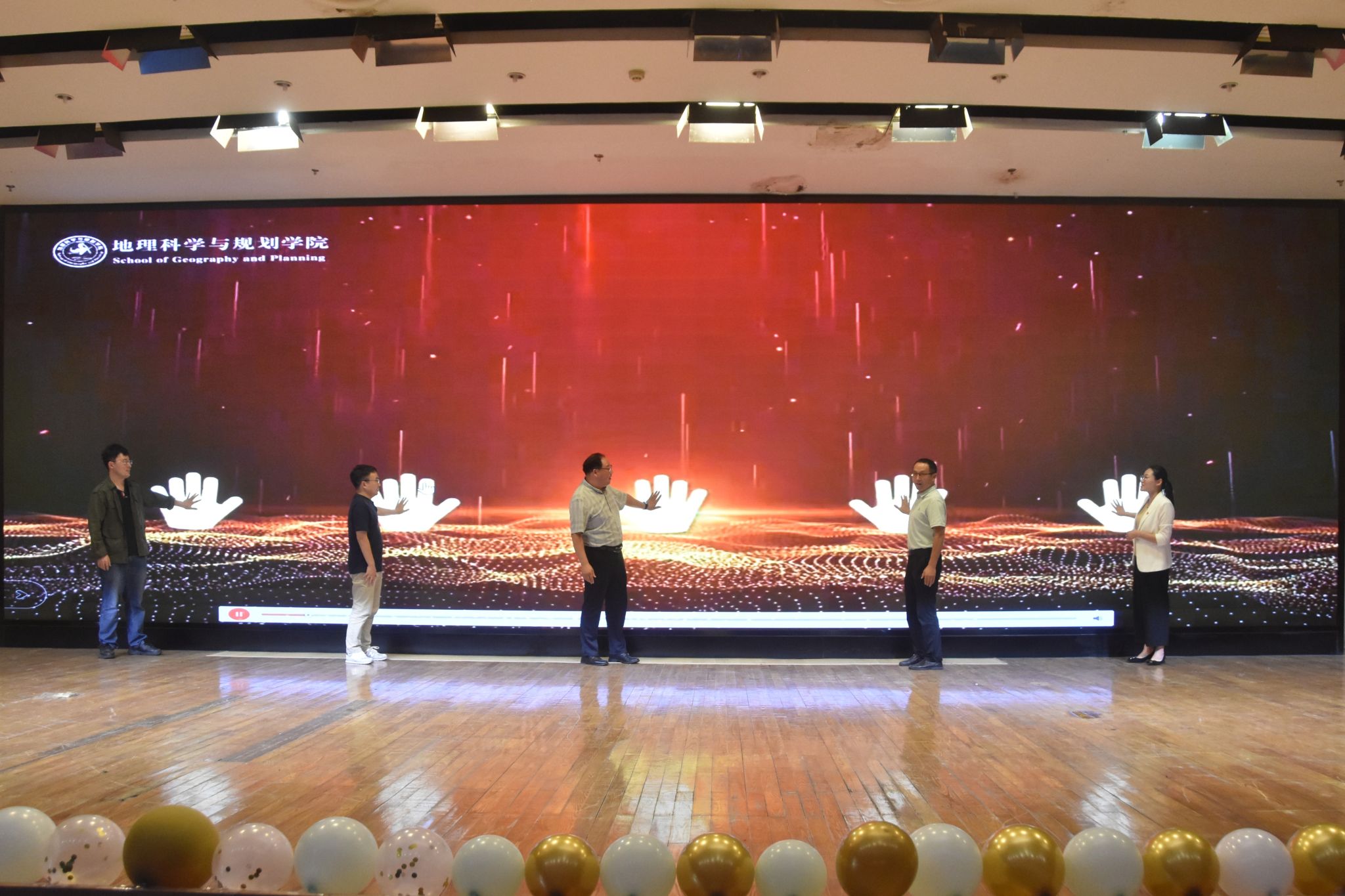 伴随着热烈掌声,学院党委书记殷成志登台致辞。他以“星空”为喻,寄语新生怀揣鸿鹄之志,在地理探索的征途上脚踏实地、格物致知,以慧眼观天地,以实干践初心。随后,刘传明院长为学科竞赛获奖学生颁奖,见证学子们的成长与荣光;紧接着,获奖学生代表、学生会主席团成员许烨分享两次参赛经历,她勉励同学们既要夯实专业基础、锤炼过硬素养,也要勇闯创新之路,在实践中探寻地理学的独特魅力;团委书记姬广建详细介绍星空文化节活动内容与参与方式,邀请新生在文化盛宴中绽放光彩。最后,殷成志、刘传明、周亚芳、王怀军、姬广建共同按下屏幕“手掌印”,第十届星空文化节正式启航。